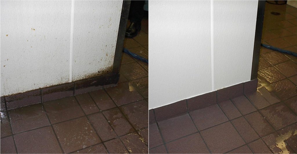 Within the kitchen, ENV services the Hot Line Equipment, Walls behind hot line equipment, Prep area, All Hoods including the filters, Dish pit, all kitchen Floors and Baseboards up to “6.